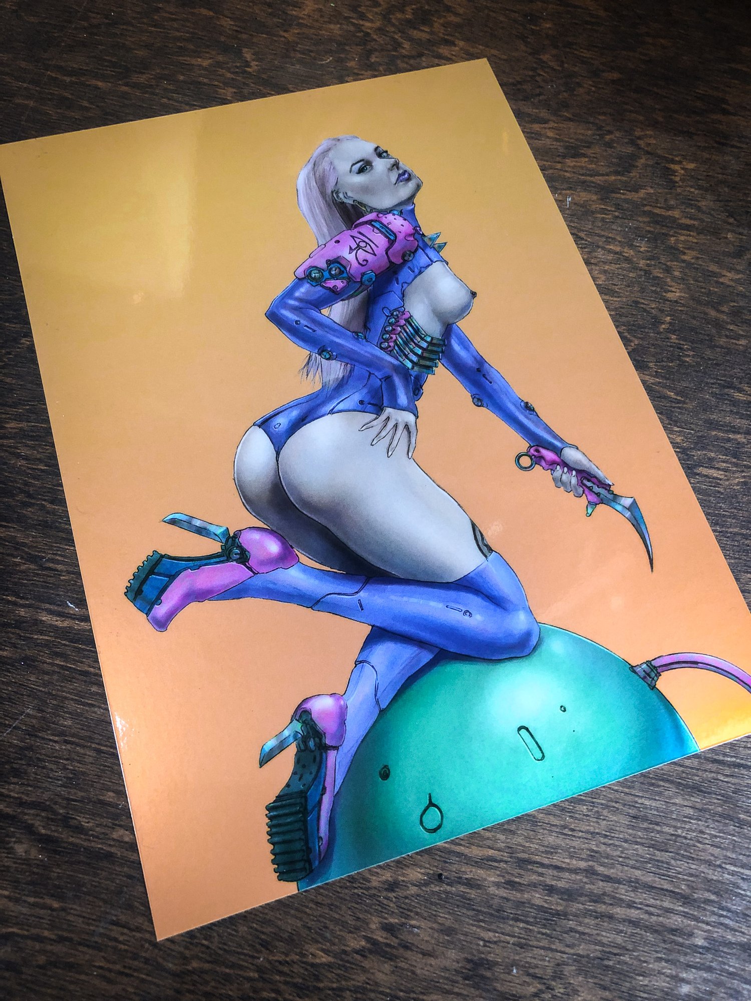 Sexy cyberpunk art of Merrick Monroe by Don Austin aka @dtronaustin! Printed full-bleed on archival-quality 5x7" metallic paper and ready to frame or display.